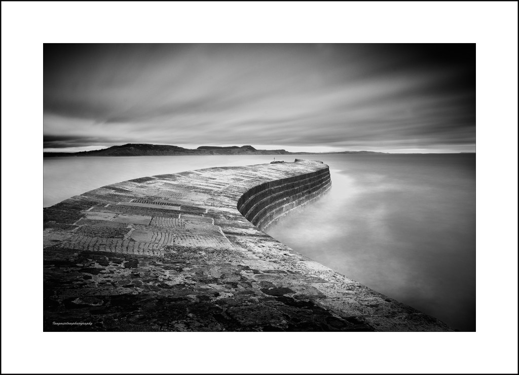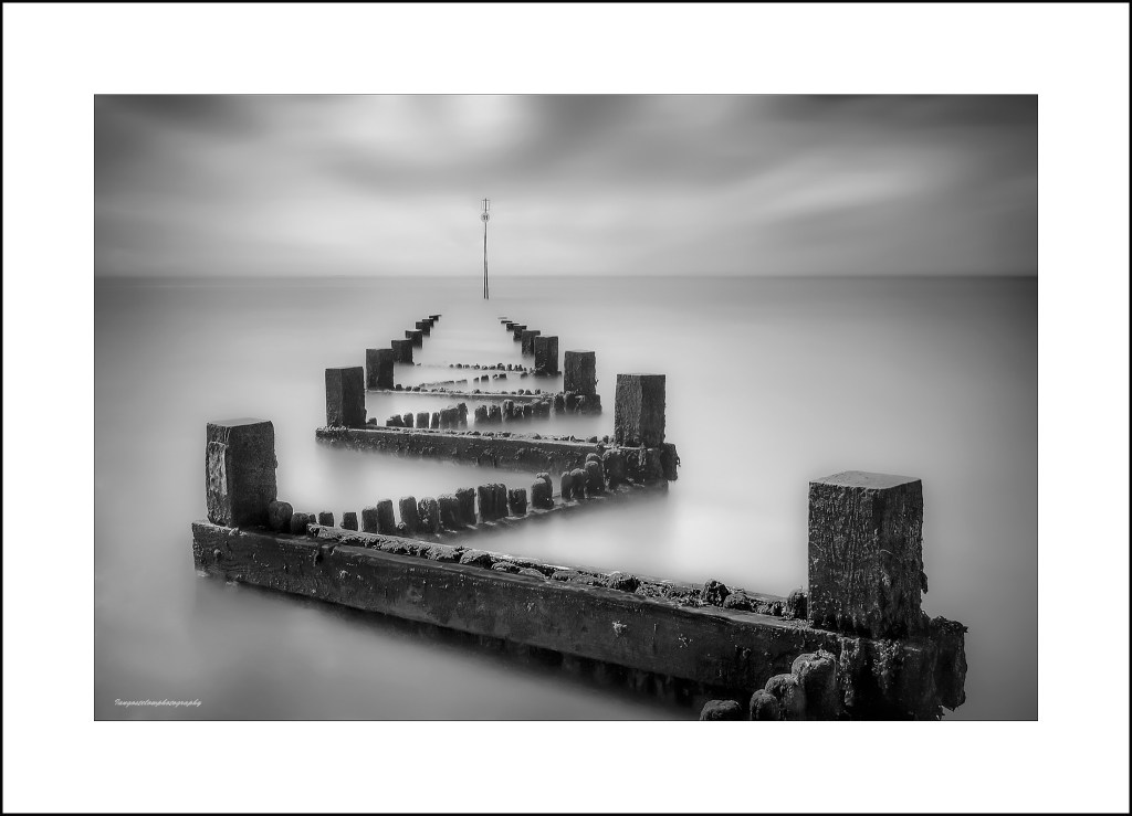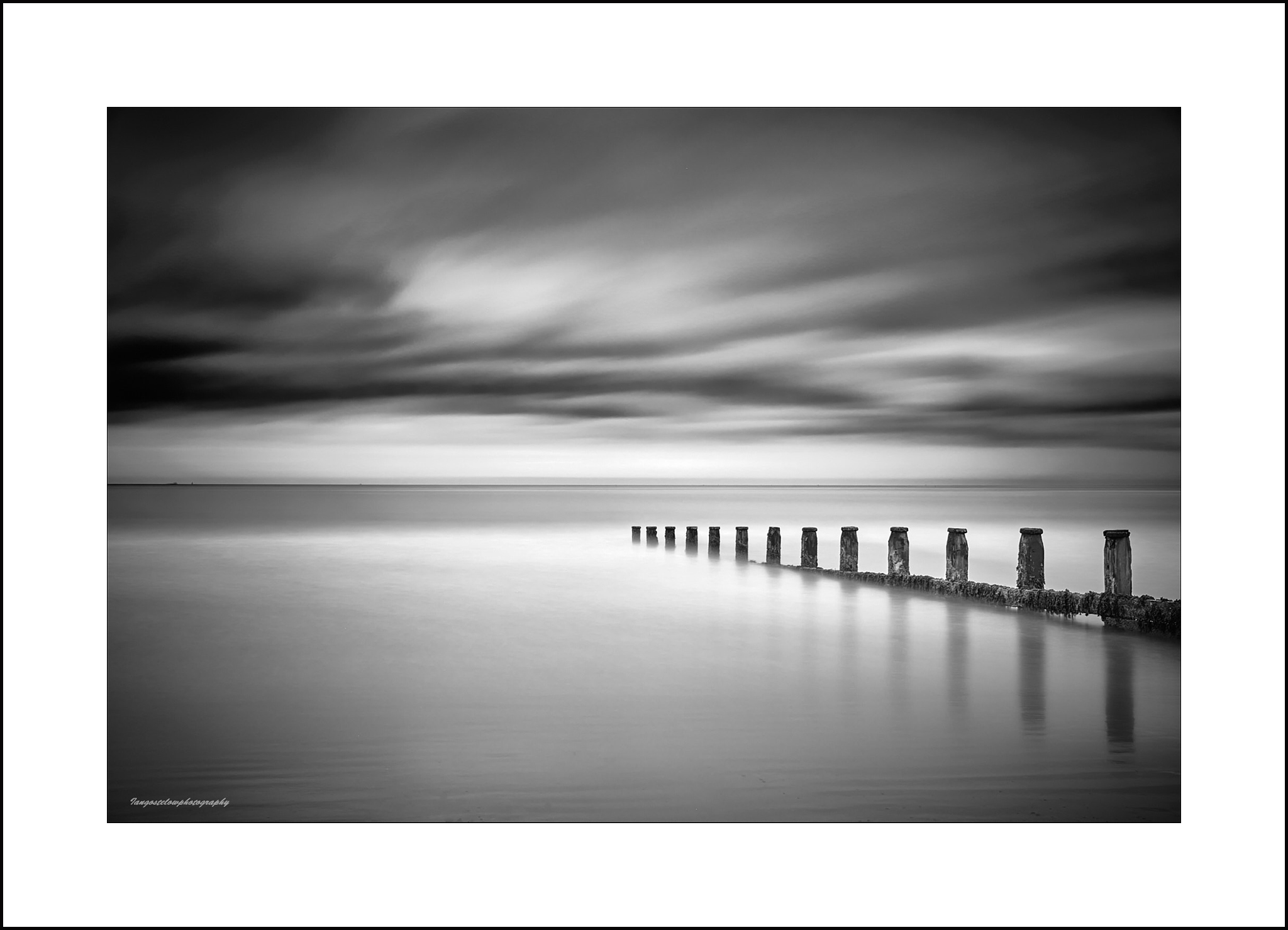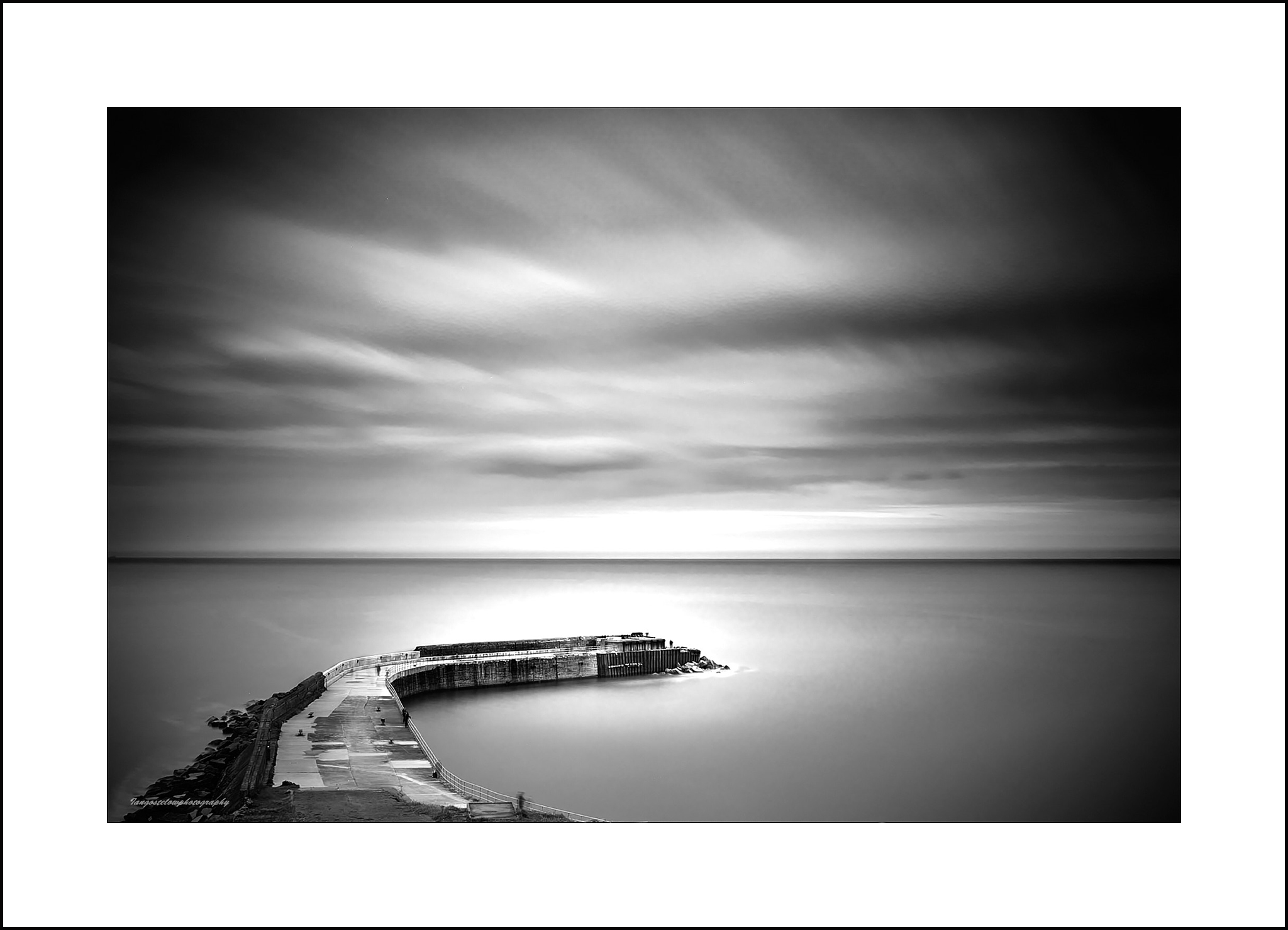 For these photographs, taken around the coast of Britain, I have employed a long exposure technique; I chose this approach because it simplifies the image: the chaotic, endless shifting of the waves are stilled and the movement in the clouds is captured increasing the sense of space. The geometry of those structures standing in defiance of the waves is emphasised adding a reassuring sense of balance and solidity to the image.