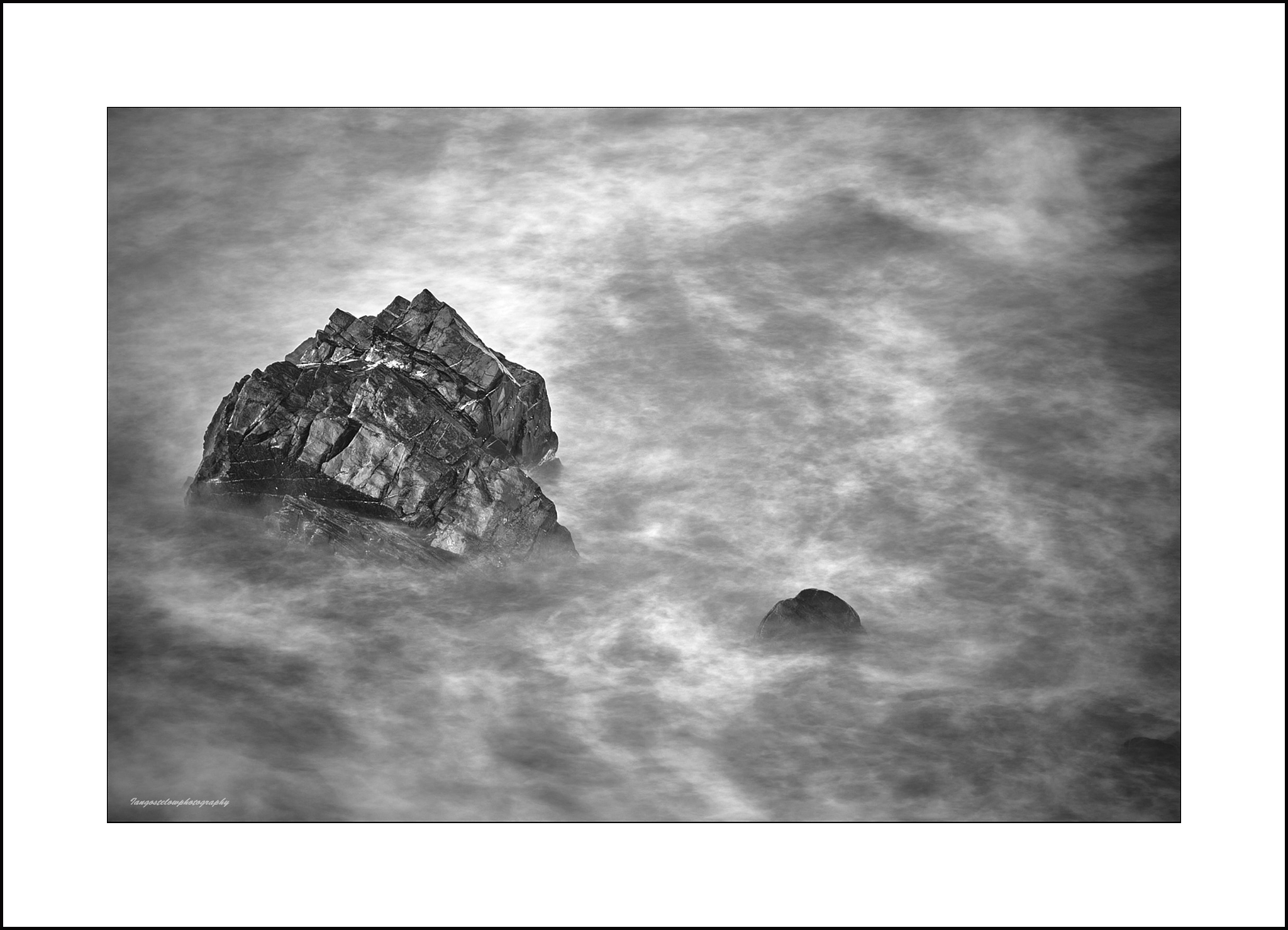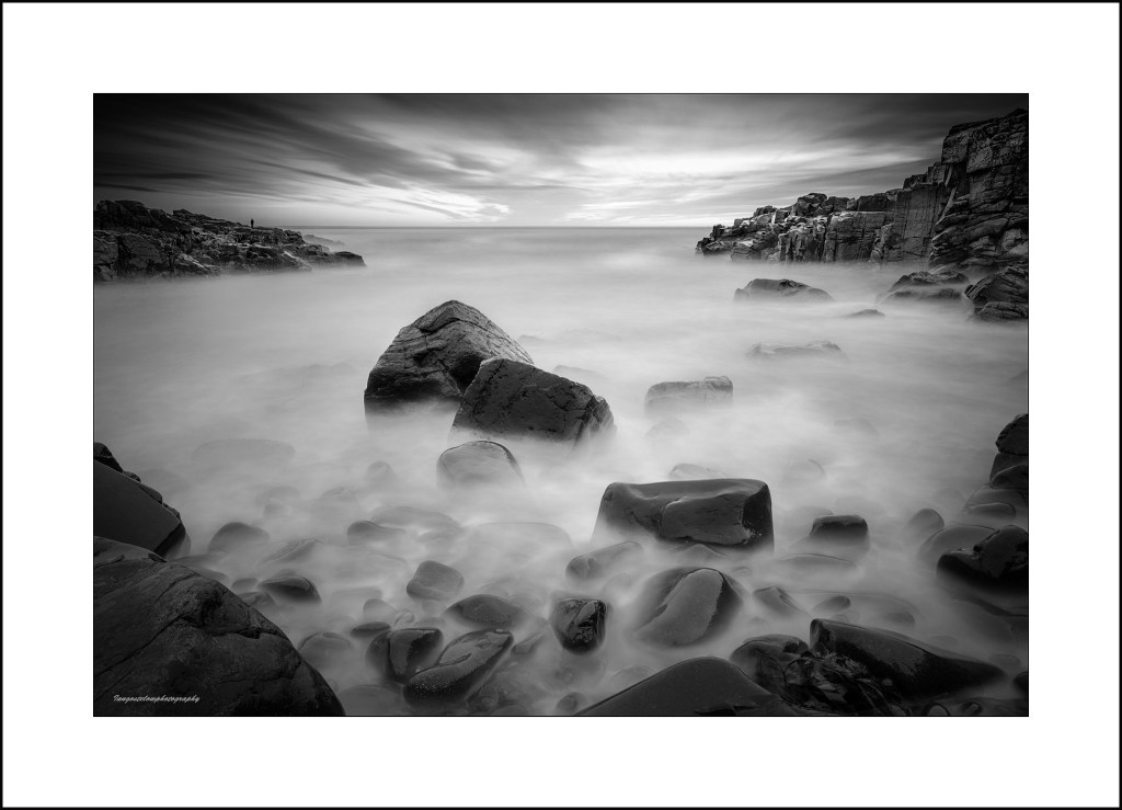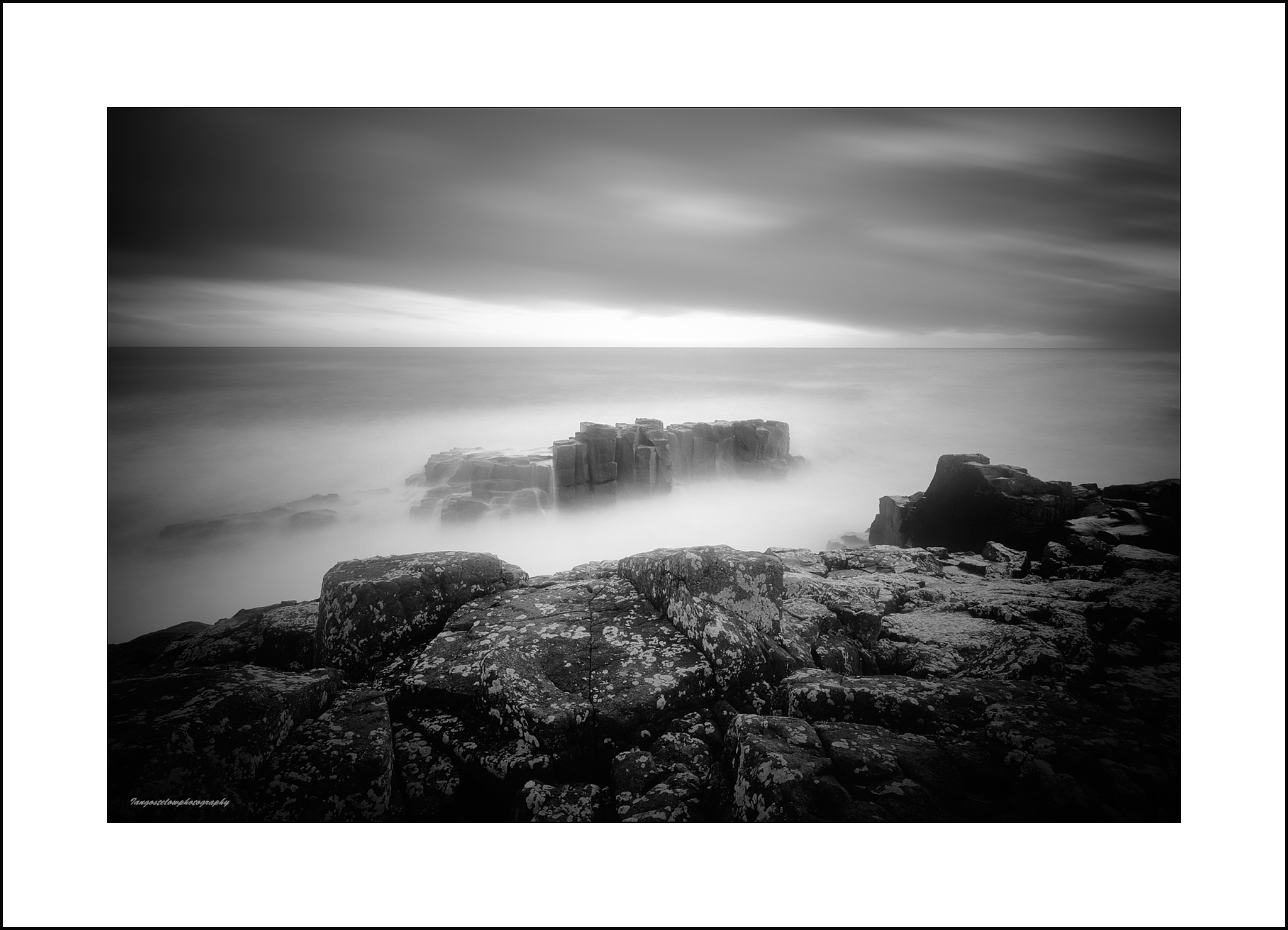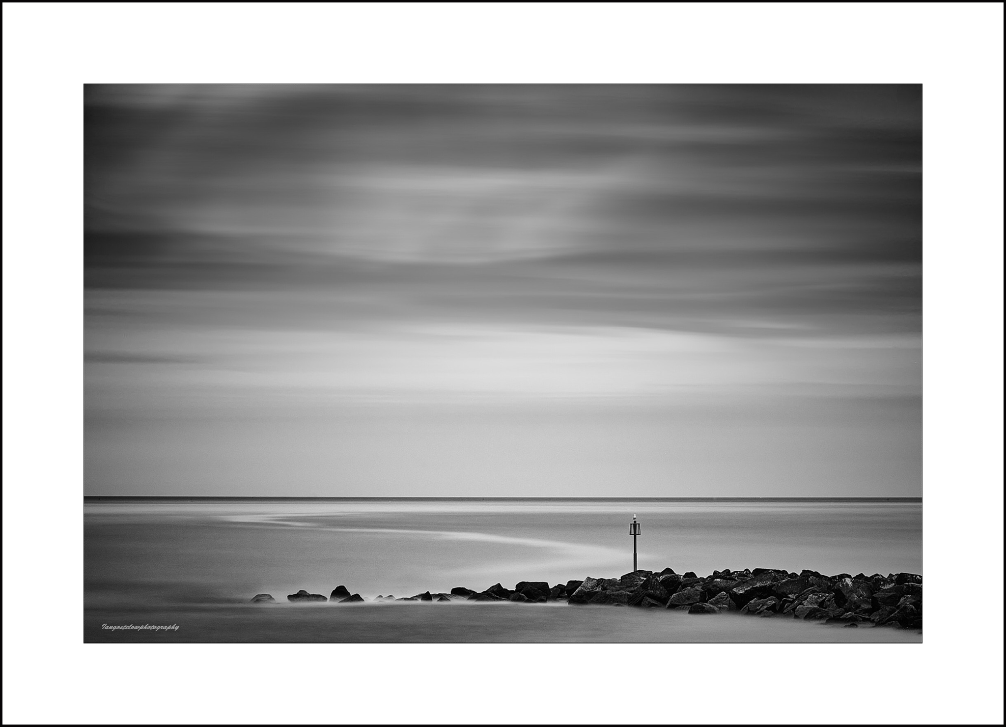 For these photographs, taken around the coast of Britain, I have employed a long exposure technique; I chose this approach because it simplifies the image: the chaotic, endless shifting of the waves are stilled and the movement in the clouds is captured increasing the sense of space. The geometry of those structures standing in defiance of the waves is emphasised adding a reassuring sense of balance and solidity to the image.
